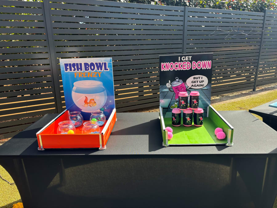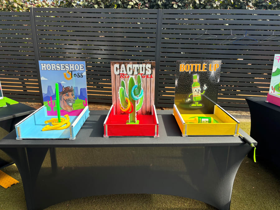 Set of 6 tabletop mini Carnival Games for your next event. These games come with 2x 6ft trestle tables and 1x 4ft trestle table for setup.