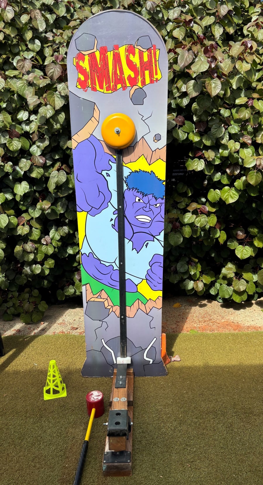 A cute kids version of the old classic carnival strongman game where you swing the hammer against the block and try to ring the bell at the top. Add the Kids Hi Striker to your next School Carnival, Birthday Party, Church Carnival, Company Picnic or Festival.