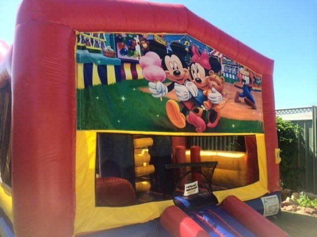 Large Mickey & Minnie Carnival theme Combo Castle. Has a huge 2.5m high slide inside. This is a 3 hour hire. Please enquire for extended hours rates for private bookings.