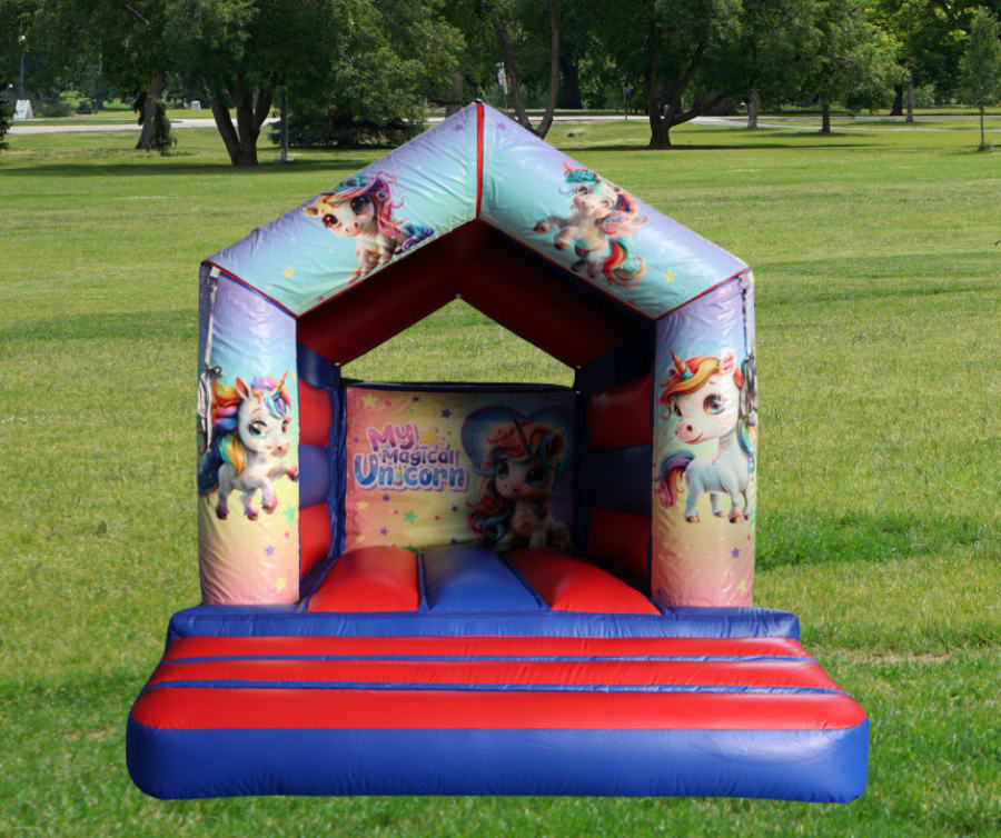 Regular 4 x 4 bouncer with a Unicorn theme.