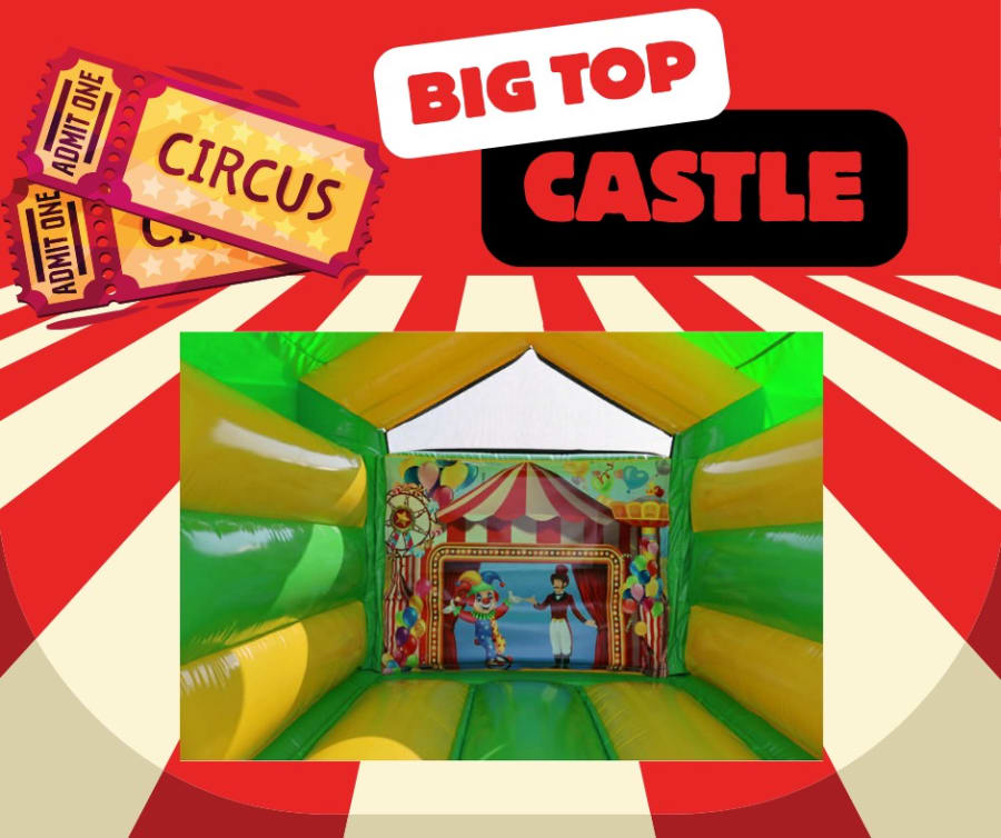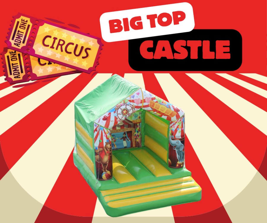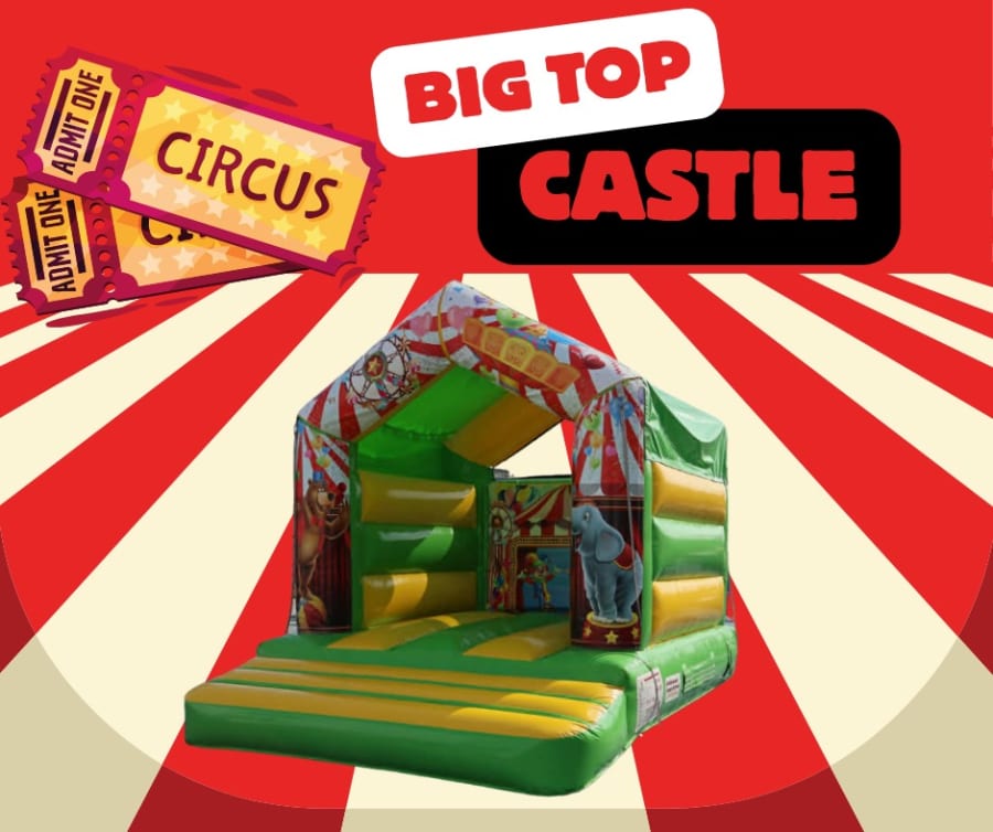 Regular 4 x 4 bouncer with a Circus/Carnival theme.