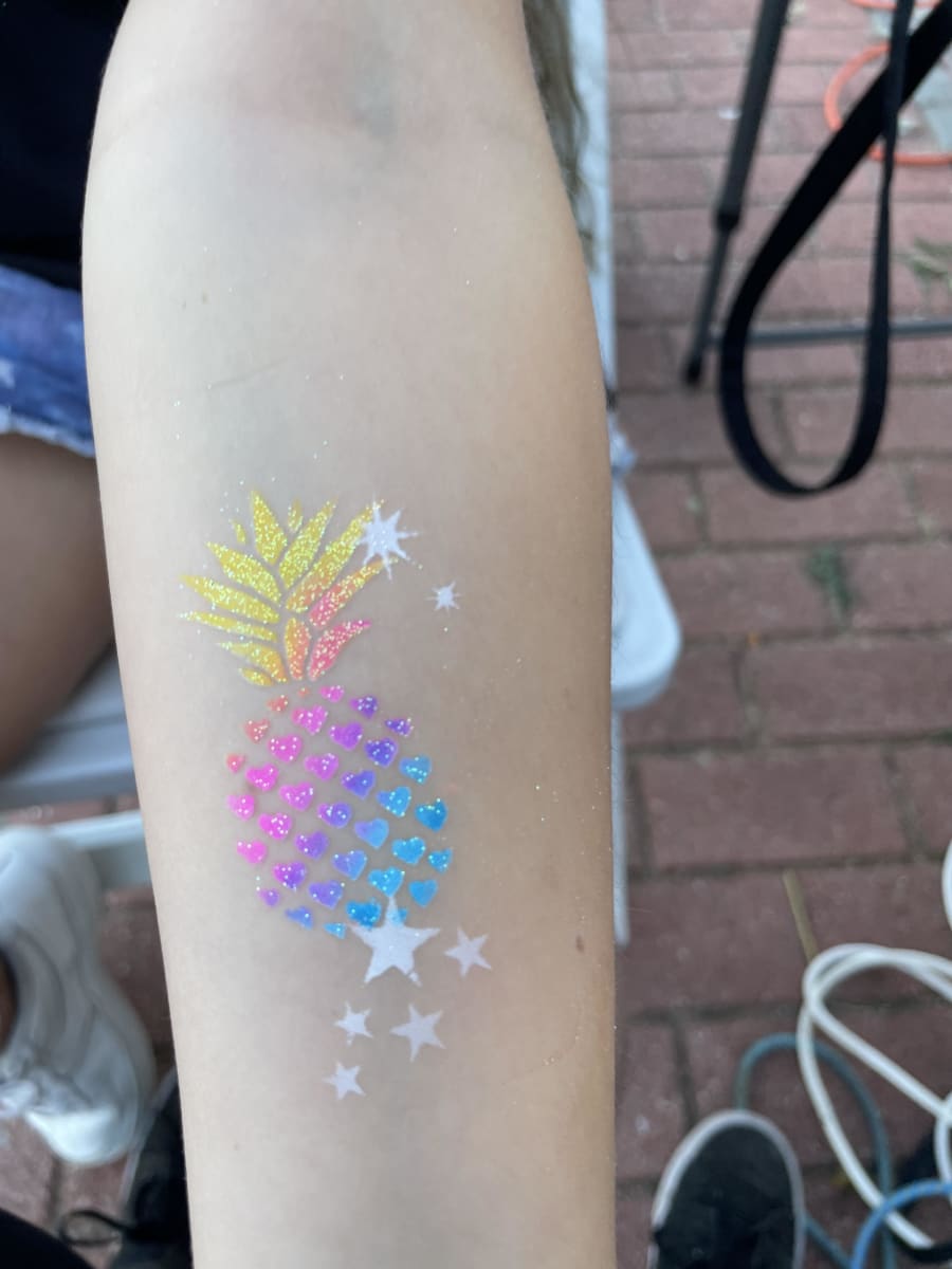 As airbrush tattoos are so much quicker and the line can move so quickly we often have kids coming back for multiple designs which is great!