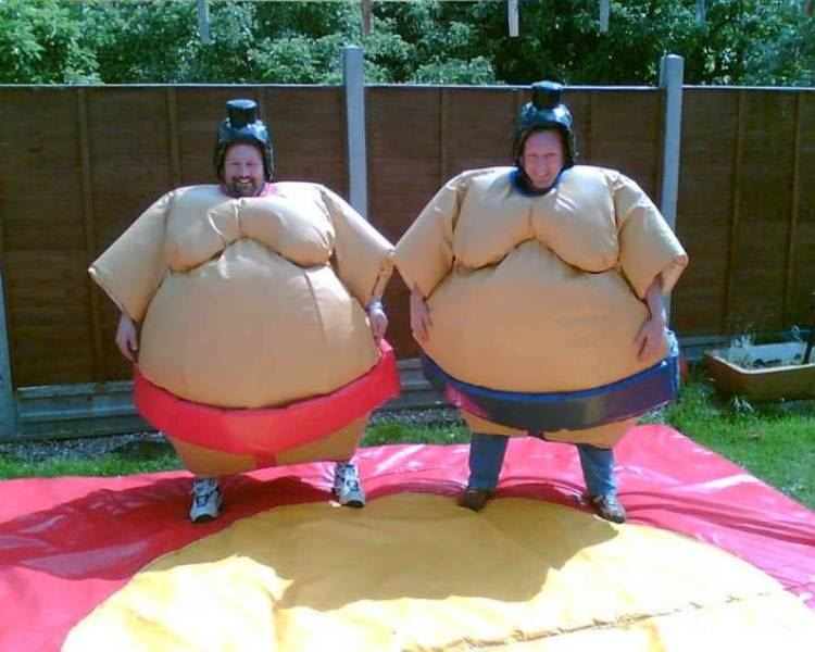 For belly bumpin fun, you need our sumo suits! We have adults and kids sizes and they come with padded helmets and mats. NO power required for these, I mean apart from your raw inner sumo power!!